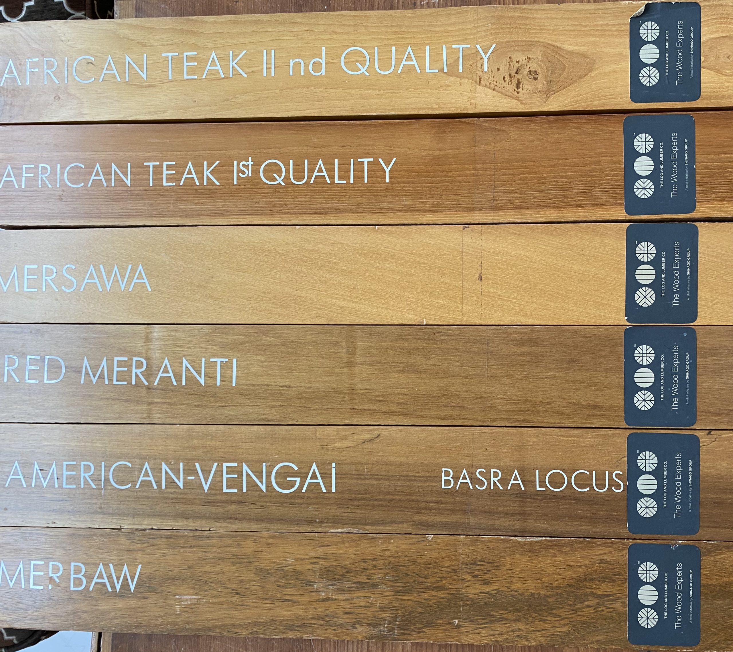African Teak First Class, African Teak Second Class, Mersawa (White Sal), Red Meranti (Red Sal), South American Basralocus