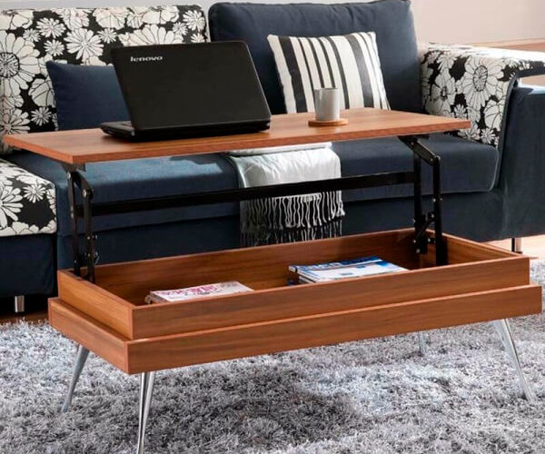 Modern Lift Top Coffee table with storage concealed underneath. Coffee table top, Just lift it up and convert it into study table or laptop table.