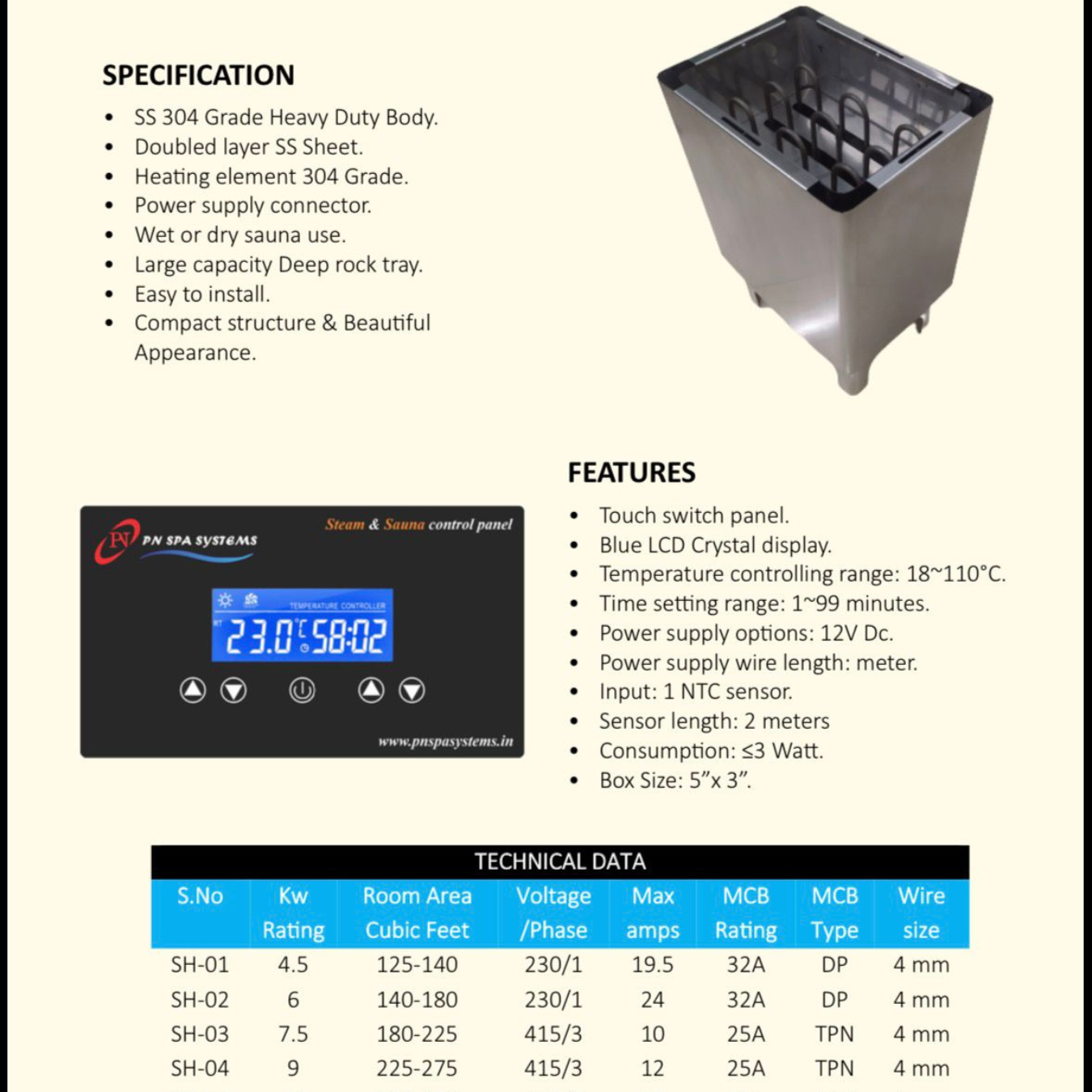 The included sauna stones (16 kg) store heat efficiently and release gentle steam when water is poured, creating a traditional and authentic sauna experience. The automated controller allows precise control over temperature and time, ensuring safety and convenience for both beginners and experienced users.